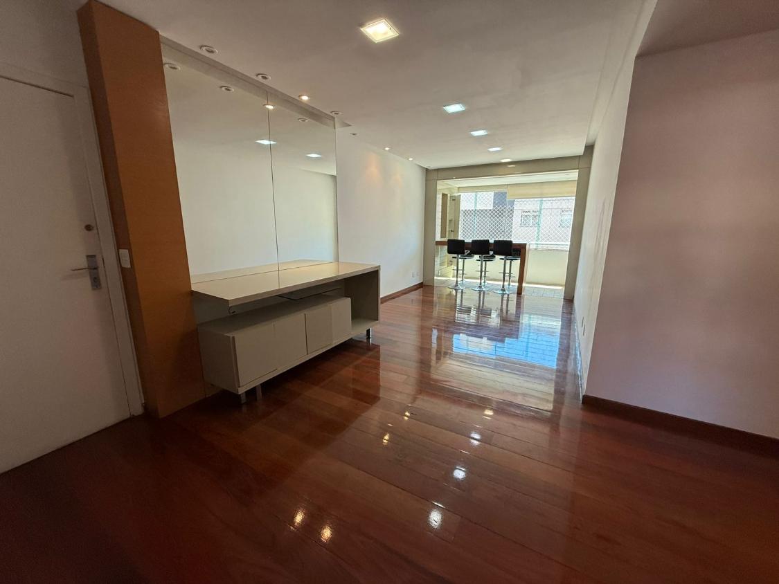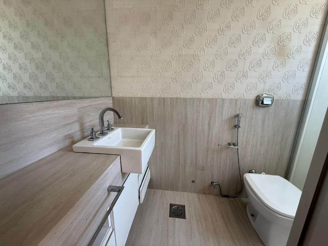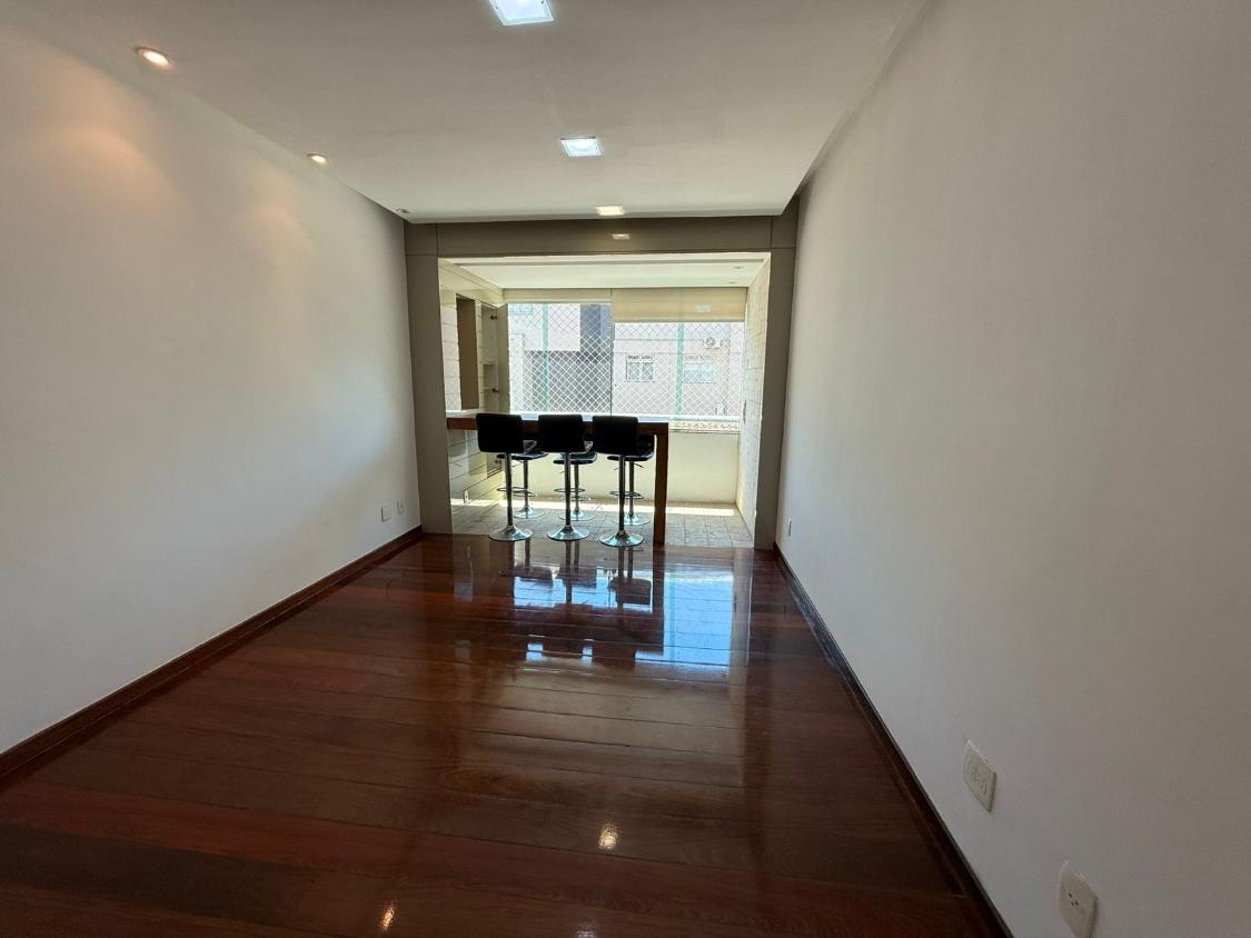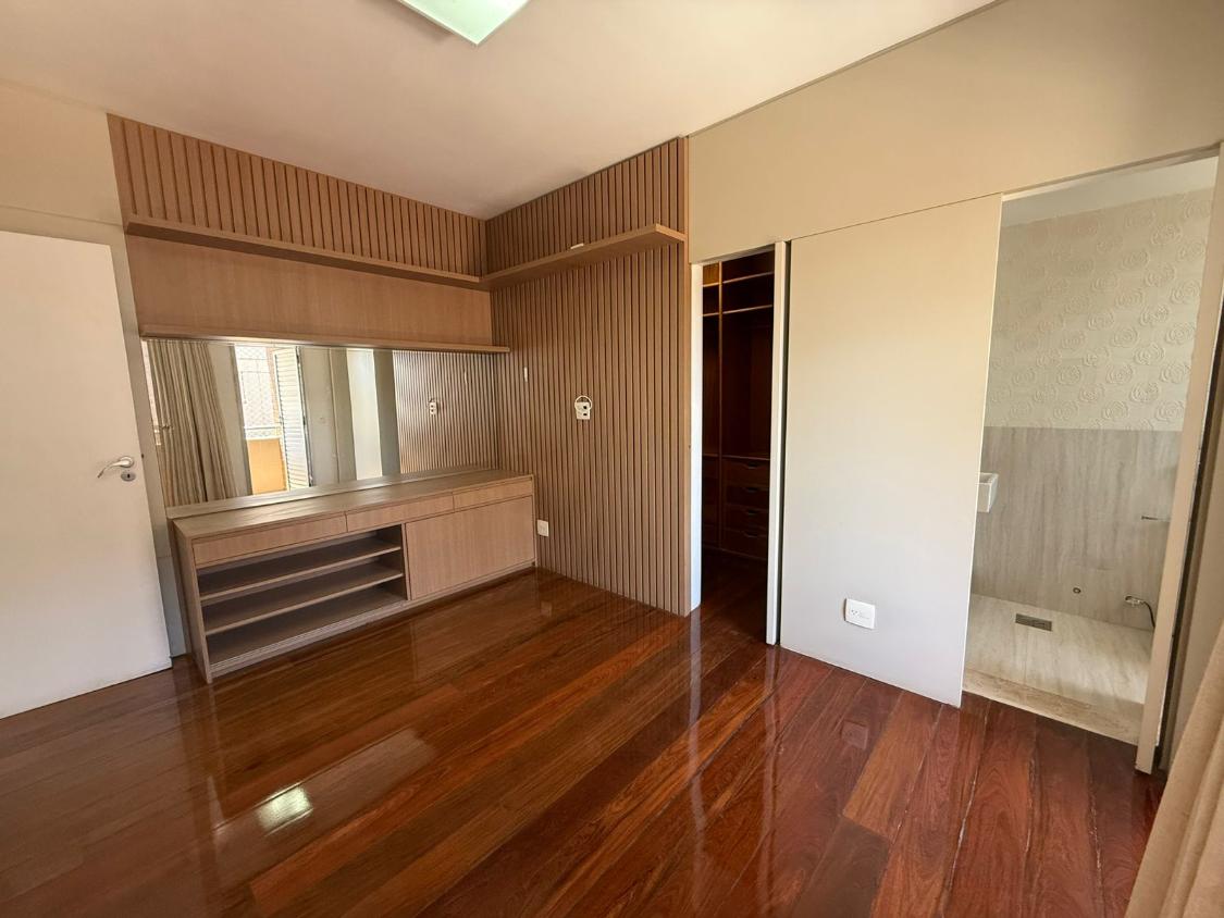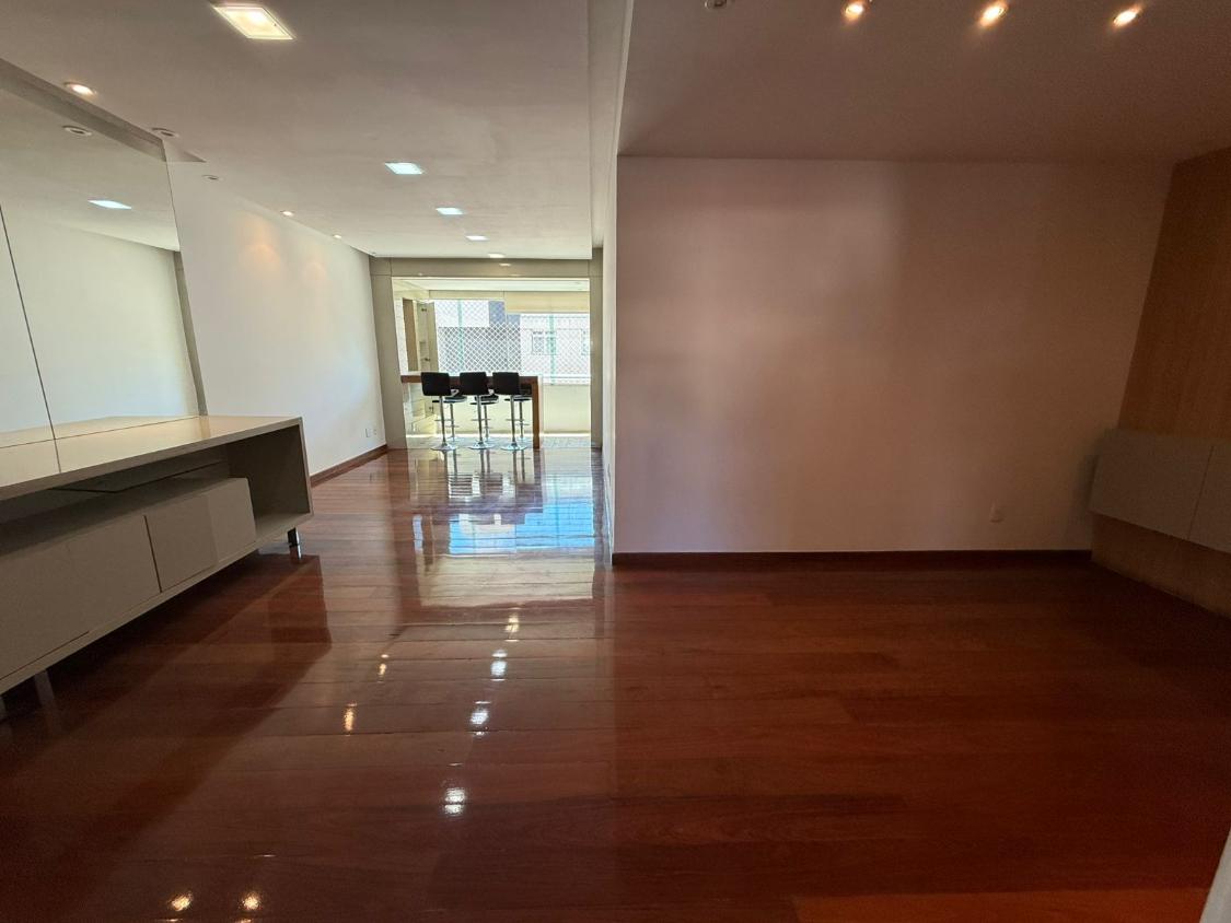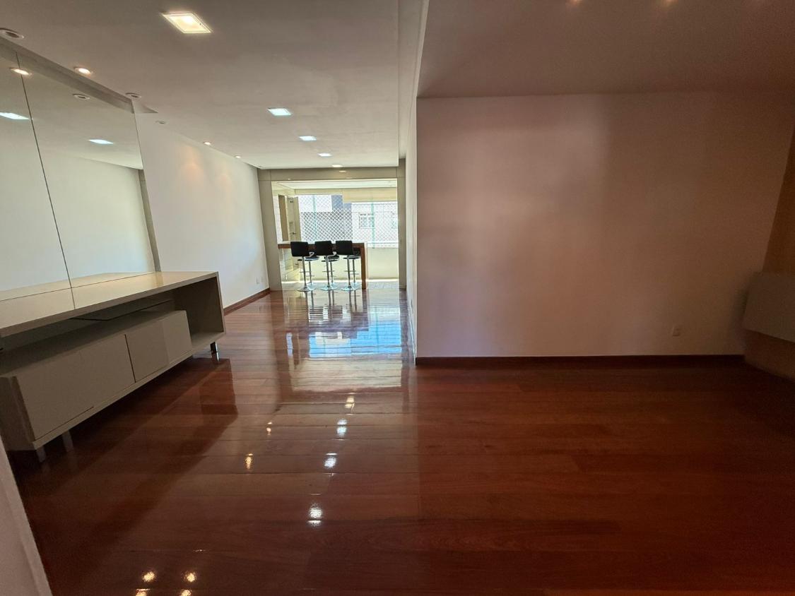 Apartamento com 145 metros, sala para dois ambientes, cozinha com armários, DCE, lavabo e 4 quartos sendo 2 com suíte.